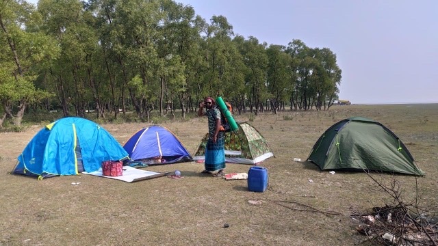 সেখানেই ক্যাম্প ফেলার সিদ্ধান্ত নিলাম প্রথমে৷ এখানে বাইরের কেউ বিরক্তও করতে পারবেনা৷ কিন্তু সমস্যা হলো এই খালের কাঁদামাটি পার করে সব জিনিস পত্র এখানে আনা মুশকিল৷ নৌকাও জোয়ার না আসলে কাছে আনা সম্ভব না৷ তাই অনিচ্ছা স্বত্বেও খালের ঐ পারের খালি জায়গাতেই ক্যাম্প ফেলেছিলাম আমরা৷